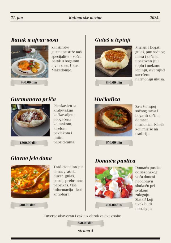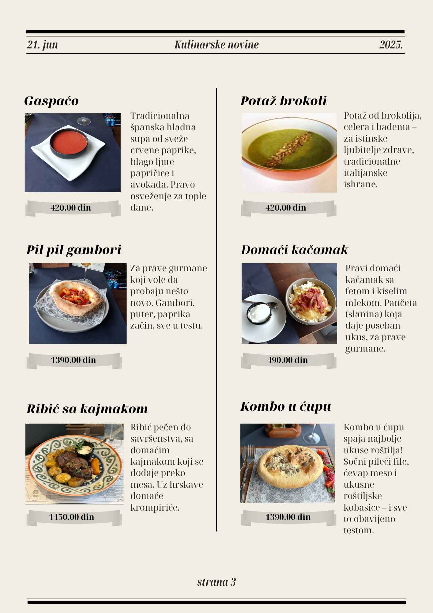 Napravljen sa listom najukusnijih jela, pripremljenih sa ljubavlju i velikom strašću za kuvanje.